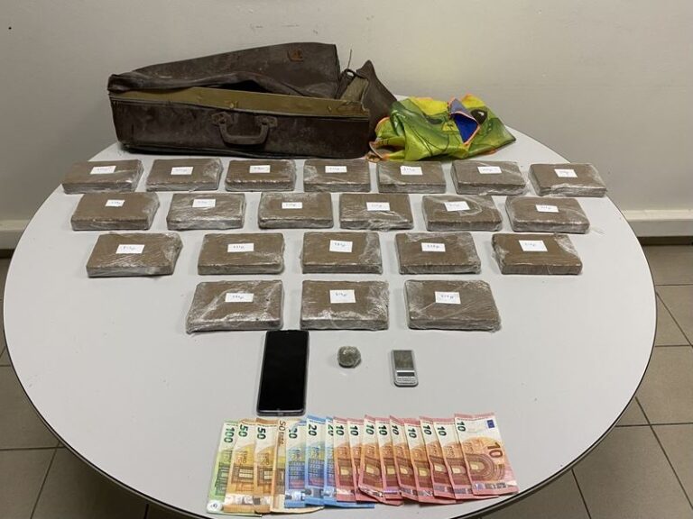 Mediat greke shkruajnë se autoritetet vendase gjetën dhe sekuestruan 11 kg e 98 gr heroinë të ndarë në 21 pako, 5.5 gr kanabis, celular dhe 400 euro të ardhura nga trafiku i drogës.