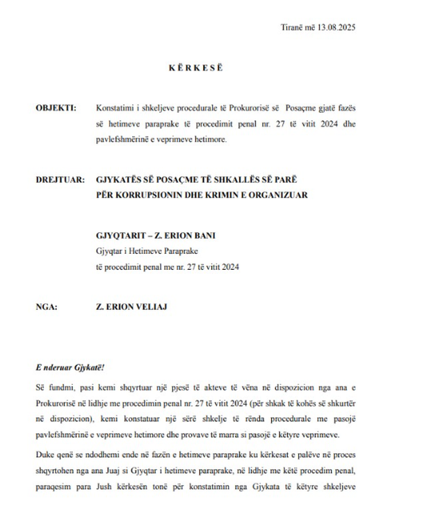 Përmes një materiali prej 77 faqesh, pala mbrojtëse e Veliajt ka dorëzuar në Gjykatën e Posaçme një kërkesë përmes së cilës kërkon që hetimet të shpallen të pavlefshme.