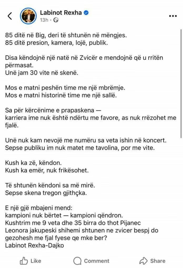 Reality show Big Brother VIP Kosova ka rikthyer në qendër të vëmendjes figurën e Labinot Rexhës, duke ndezur sërish debatet për deklaratat dhe përplasjet e tij brenda dhe jashtë shtëpisë më të famshme në Kosovë.