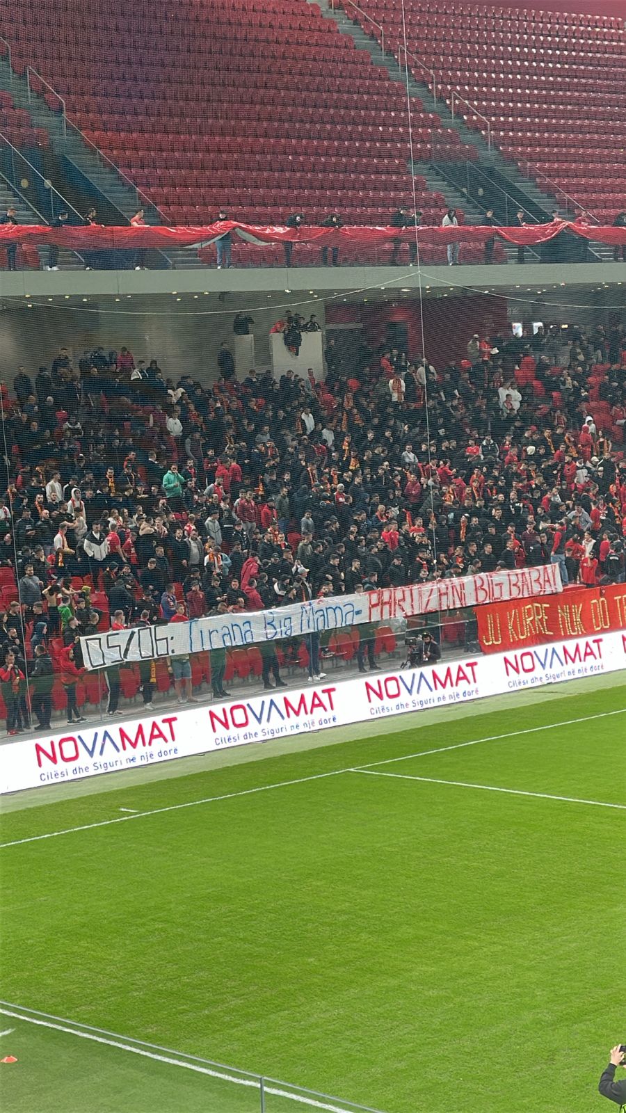 Tifozët e të kuqve janë kundërpërgjigjur me një banderolë, të shfaqur në shkallët e stadiumit “Air Albania”.