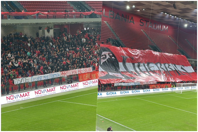 Tifozët e të kuqve janë kundërpërgjigjur me një banderolë, të shfaqur në shkallët e stadiumit “Air Albania”.