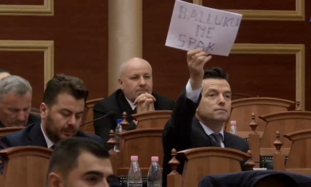 Kreu i Partisë Mundësia Agron Shehaj i ka drejtuar zv/kryeministres Belinda Balluku një pankartë gjatë fjalës së saj në foltoren e Parlamentit, ku ajo foli për herë të parë pas marrjes si e pandehur nga SPAK.